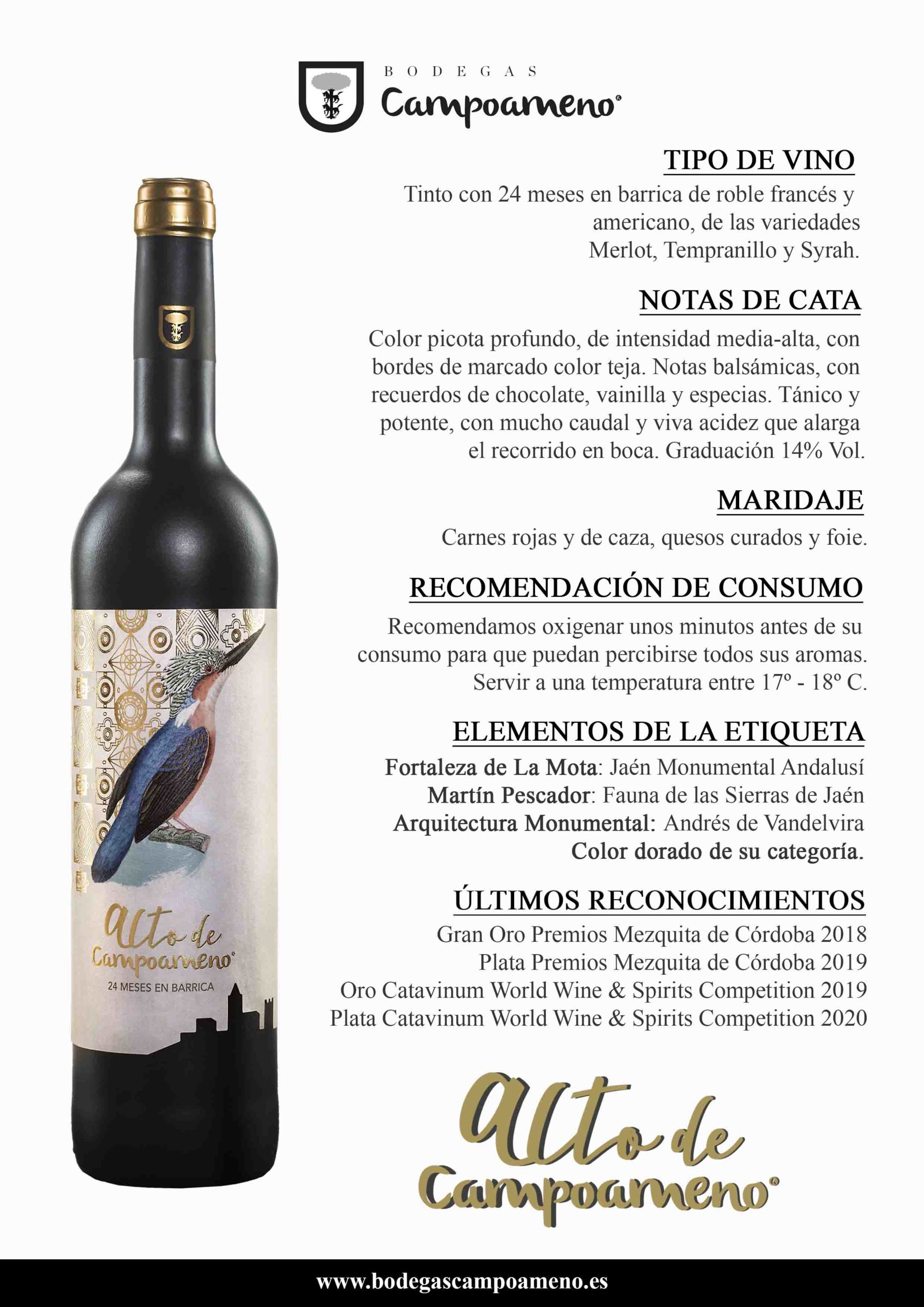 Oxigenar unos minutos antes de su consumo para que puedan percibirse todos sus aromas. Servir a una temperatura entre 17-18ºC